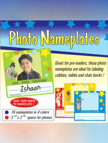 2 inch by 2 inch photo nameplates upon which the child’s photo can be glued.16 such photo nameplates are ideal for labeling cubbies, tables or chair backs.
