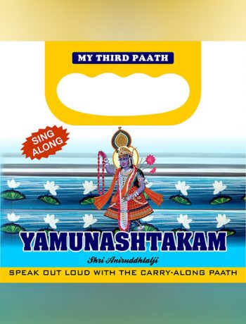A book with a ‘handle’ which your child would love to grasp. The pages of this book have the Yamunashtak written in bold and large letters. The QR code given at the back of this book plays ‘Namaami Yamunamaham…’ on a device so the child can listen to the all-important Paath as well.