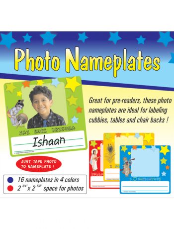 2 inch by 2 inch photo nameplates upon which the child’s photo can be glued.16 such photo nameplates are ideal for labeling cubbies, tables or chair backs.